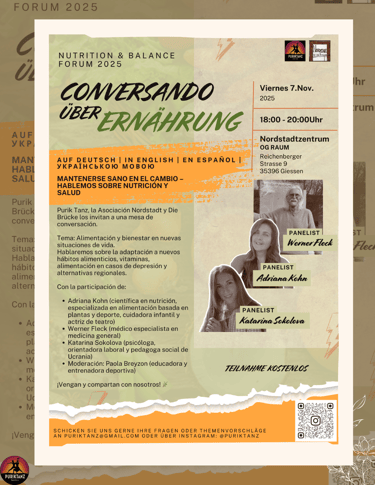 #Ernährung #Gesundheit #Gießen #Nordstadtzentrum #NutritionBalanceForum #Conversando #Gesprächsrunde #Spanisch #Englisch #Deutsch #Ukrainisch