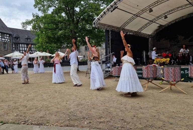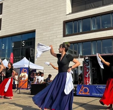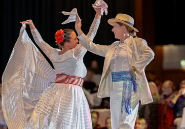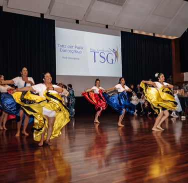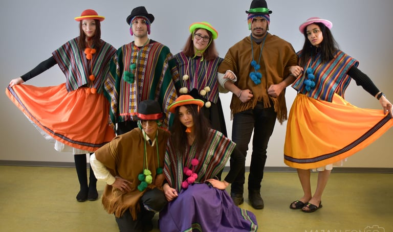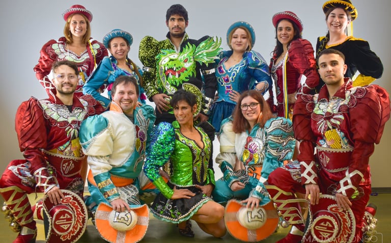 Die Tänze Caporales und Saya stammen aus Bolivien und spiegeln die Lebendigkeit und Vielfalt lateinamerikanischer Kultur wider. Caporales begeistert mit kraftvollen Schritten, festlichen Kostümen und dynamischem Rhythmus, während die Saya – mit afro-bolivianischen Wurzeln – durch ausdrucksvolle Bewegungen und Trommelklänge Gemeinschaft und Geschichte vermittelt. Beide Tänze verbinden Tradition, Energie und Lebensfreude und laden dazu ein, die kulturelle Vielfalt Boliviens zu erleben.